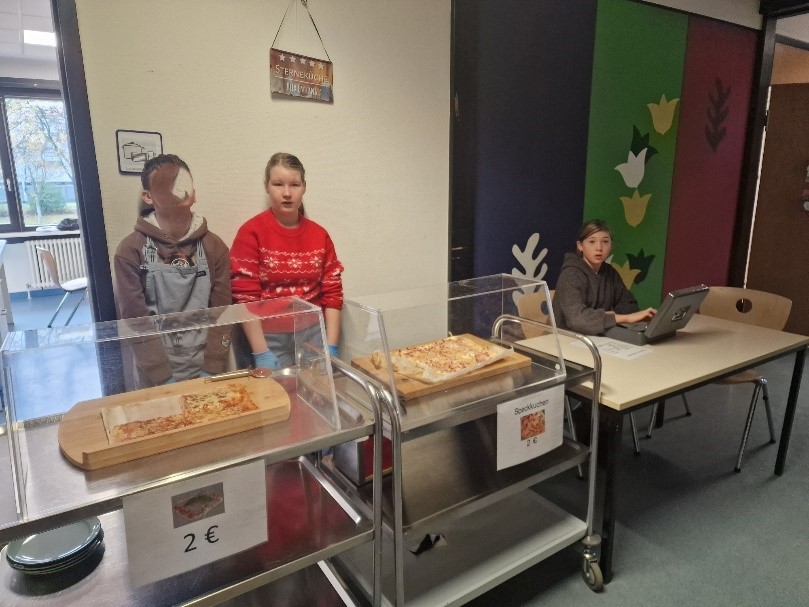 Am Dienstag verteilen wir die Aufgaben, richten unseren Arbeitsplatz und unseren Verkaufsstand sowie unsere Kasse.