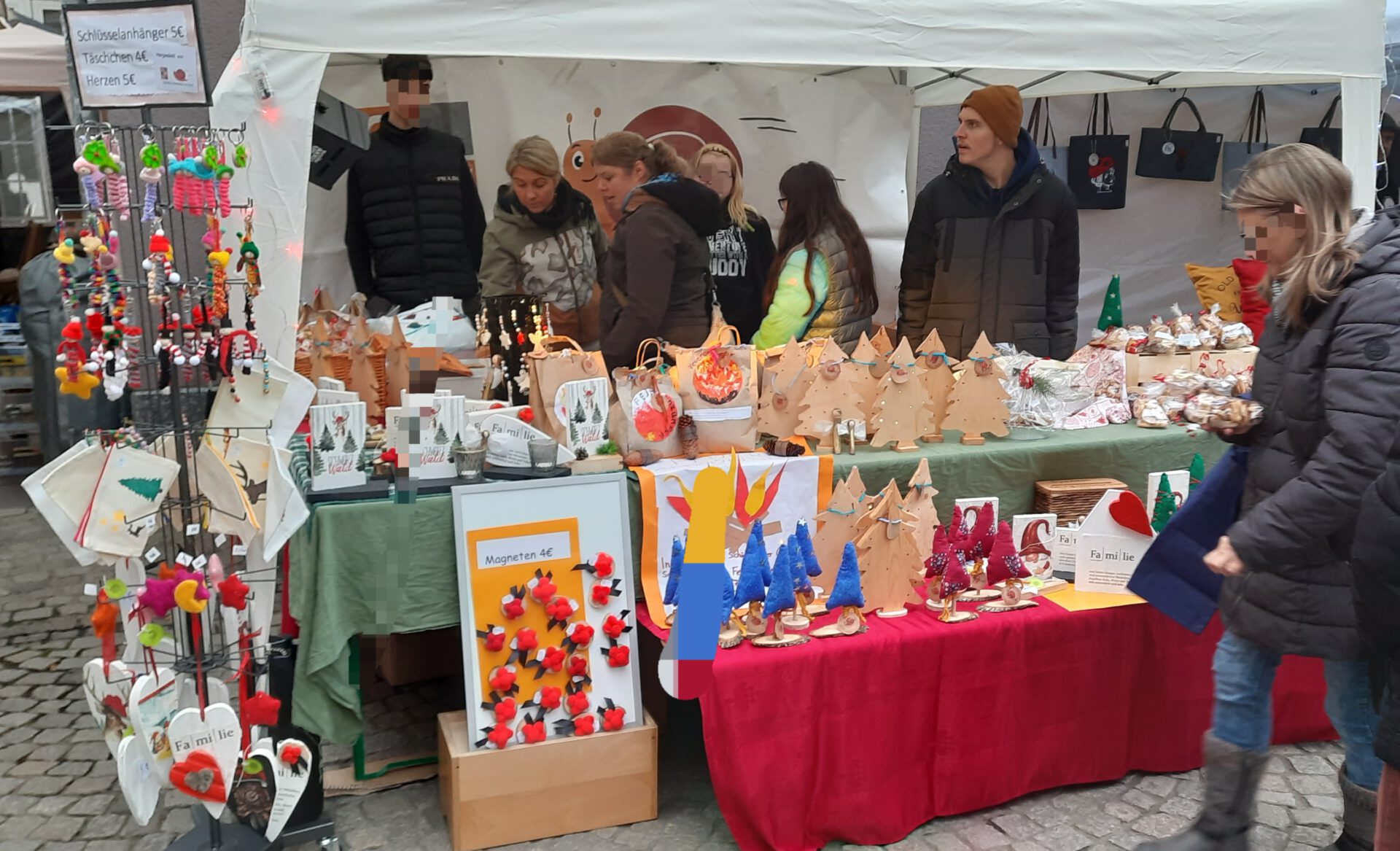Am Freitag, 29.11.24, nach der Schule ging es los. Zuerst wurde der Schulbus vollgeladen, bis unters Dach. Dann sind wir damit in die Innenstadt gefahren und haben dort unseren Stand aufgebaut. Viele Besucher sind gekommen und haben bei uns eingekauft. Am meisten verkauften wir die ausgesägten und mit einer Lichterkette verzierten Holztannenbäume, die selbst genähten Weihnachtsbäume aus Stoff, die handgemachten Feueranzünder aus Tannenzapfen, die Linzertorten und die Weihnachtsplätzchen. Das Verkaufen hat viel Spaß gemacht.